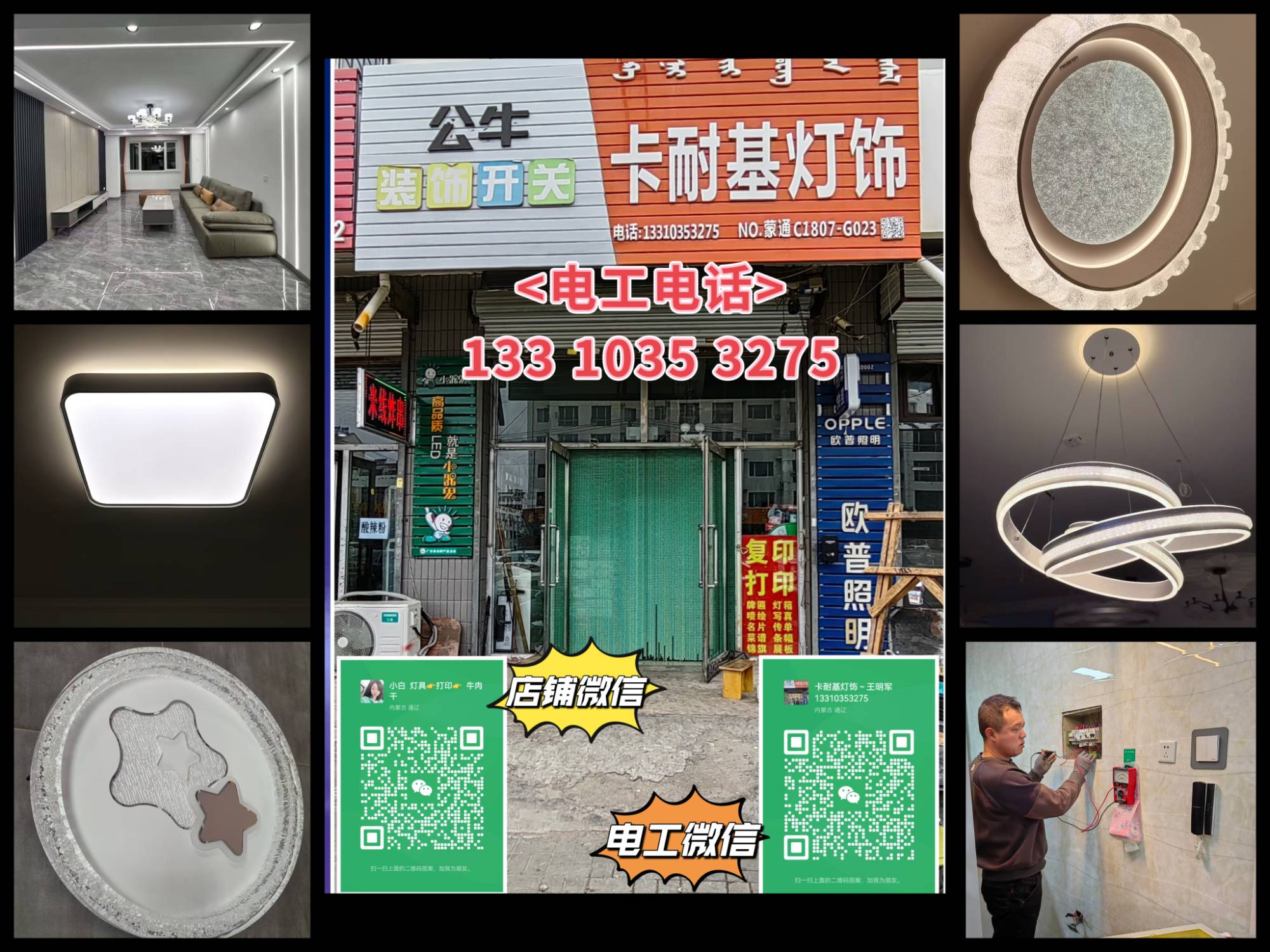 电工自家有实体店铺,可带灯配件上门安灯修灯!